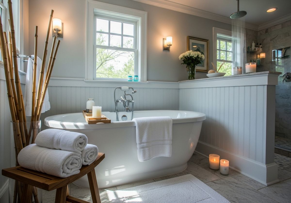 Creating a spa atmosphere in your bathroom involves several key elements working together harmoniously: